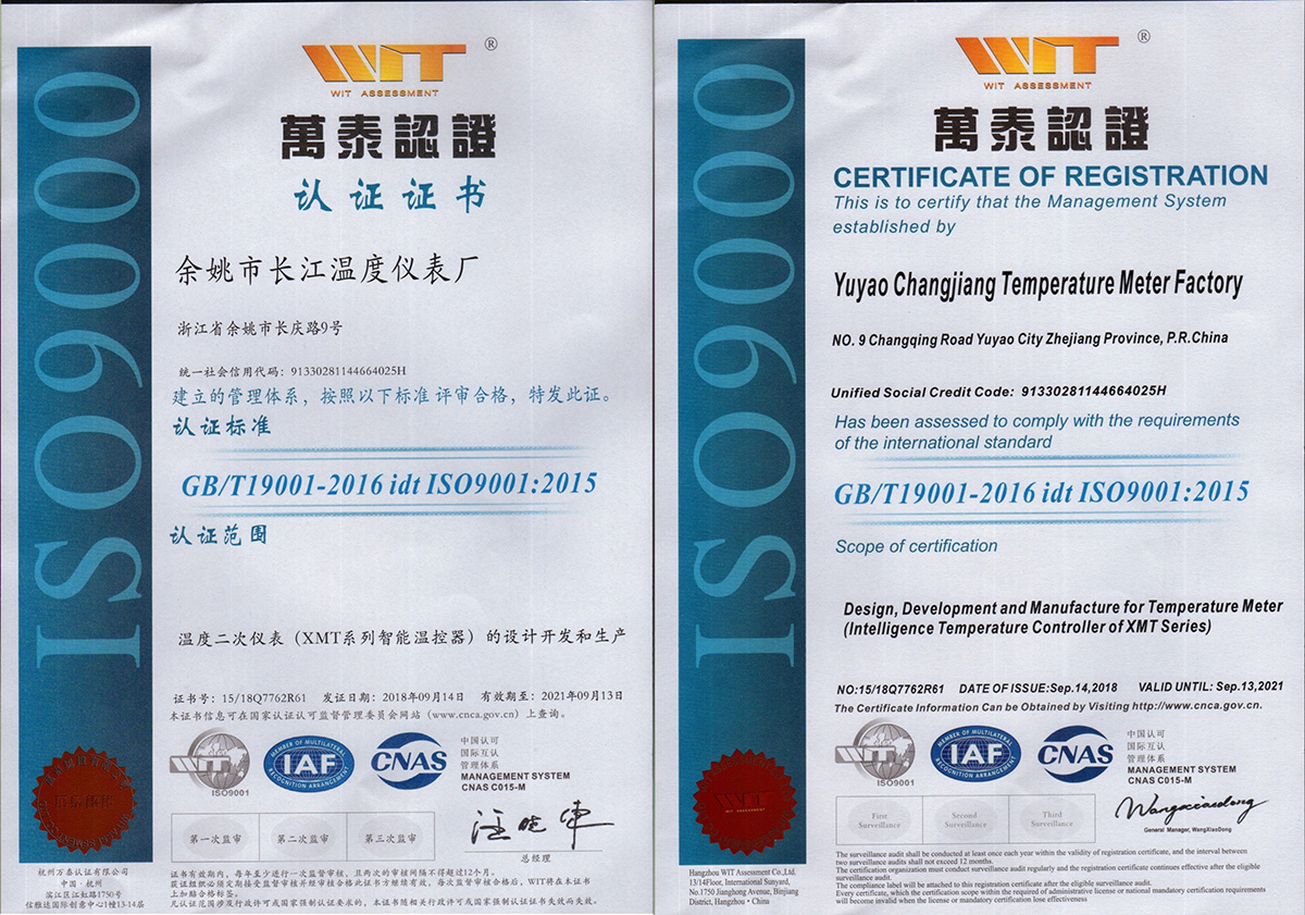 溫度儀表認證證書是什么樣的? 2025-05-15 09:46:19 650 作者:admin 【關閉】 余姚市長江溫度儀表廠是一家技術開發、生產制造和銷售相結合的專業制造溫度控制儀表的企業,擁有30多年的生產和應用經驗,2018年通過ISO9001:2015認證,關于XMT系列智能溫控器的設計開發和生產認證證書請瀏覽本站關于我們下拉欄目。 標簽: 溫度儀表 智能溫控器設計生產