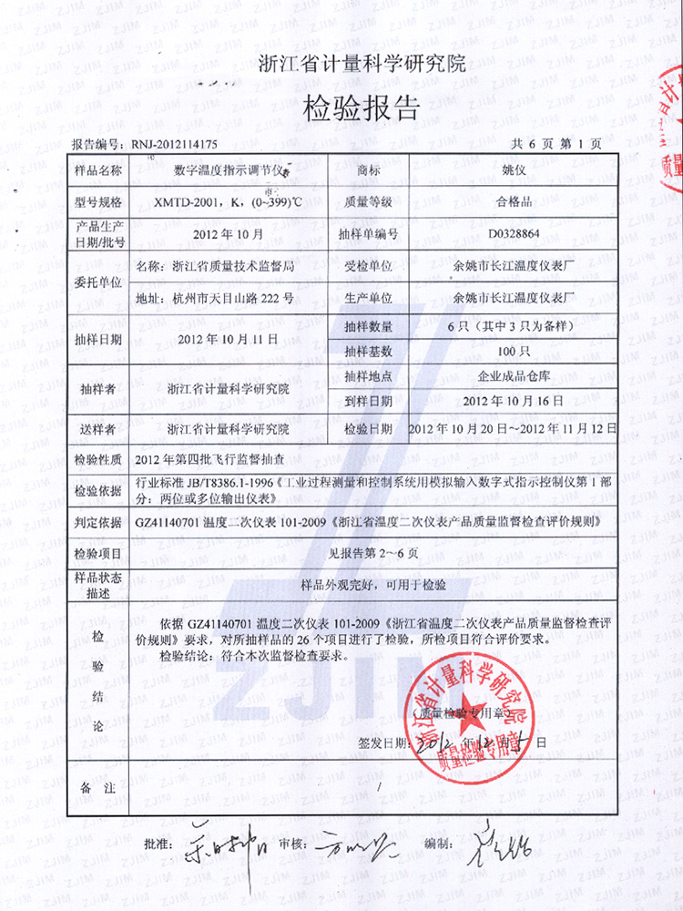2011年第2季度檢測報告(工業熱電偶)